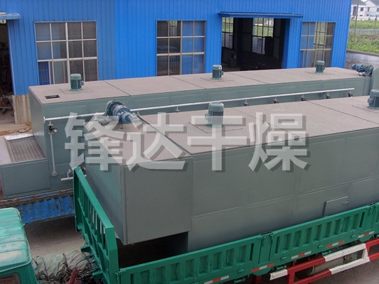 干燥機主要由進風單元、排風單元、循環風單元、網帶、蒸汽管路及冷凝排放管路系統、排濕系統、加料器、傳動機構、控制系統等部件組成。料斗中的物料由加料器均勻地鋪在網帶上,網帶采用12-60目不銹鋼絲網,由傳動裝置拖動在干燥機內移動,干燥段由若干單元組成,空氣由鼓風機鼓入,通過熱交換器變成熱空氣穿過物料層,完成熱量與質量的傳遞過程,大部份氣體循環,一部份溫度較低,含濕量較大的氣體作為廢氣由排濕風機排出。