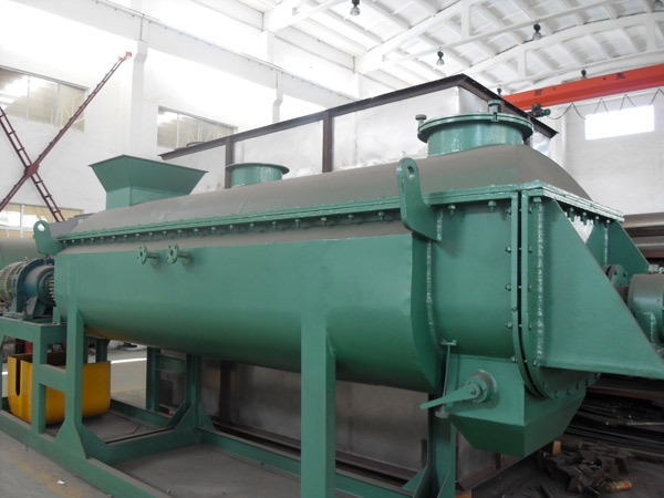 漿葉干燥機已成功地用于食品、化工、石化、染料、工業污泥等領域。設備傳熱、冷卻、攪拌的特性使之可以完成以下單元操作:燃燒(低溫)、冷卻、干燥(溶劑回收)加熱(融化)、反應和滅菌。攪拌漿葉同時又是傳熱面,使單位有效容積內傳熱面積增大,縮短了處理時間。楔型漿葉傳熱面又具有自清潔功能。壓縮--膨脹攪拌功能使物料混和均勻。物料沿軸向成"活塞流"運動,在軸向區間內,物料的溫度、濕度、混合度梯度很小。用導熱油做熱介質漿葉干燥機可完成低溫燃燒工作。如:二水硫酸鈣(Ca2SO4·2H2O) 燃燒轉化為半水硫酸鈣(Ca2SO4·1/22H2O)。碳酸氫鈉(NaHCO3)經煅燒轉化為純堿(Na2HCO3)等。通入冷卻介質,如水、冷卻鹽水等即可用來冷卻。如:使用于純堿行業的漿葉式涼堿機,取代老式的空氣冷卻涼堿機,節省了能源及尾氣處理設備,降低了操作費用。干燥,設備最主要的功能,不使用熱空氣,使溶劑回收、能源消耗、環境控制處于易處理的理想狀態。對需回收溶劑、易燃易氧化熱敏性物料尤為適應。已廣泛用于精細化工、石化、染料行業。軸向區間內,溫度、濕度、混合度的均勻性,使得設備可用來加熱或融化,或進行一些固體物料反應。在復合肥及變性淀粉行業均已成功使用。漿葉干燥機可用來對食物和面粉進行滅菌處理。單位有效容積內大的加熱面積,很快就將物料加熱到滅菌溫度,避免了長時間加熱而改變物料品質。