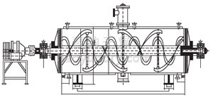 本機(jī)是一種新穎臥式間歇式真空干燥設(shè)備,濕物料經(jīng)傳導(dǎo)蒸發(fā),帶有刮板攪拌器不斷清除熱面上的物料,并在容器內(nèi)推移形成循環(huán)流,水份蒸發(fā)后由真空泵抽出。