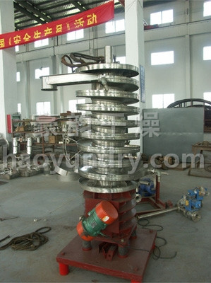 產品概述:濕物料自頂部加料口進入螺旋床內,在周向激振力及重力的作用下,物料沿螺旋床自上而下作跳躍運動直至最底層;同時,潔凈的熱風由螺旋床底部進入,與分布在床上的物料進行充分的傳熱和傳質后,由頂部排濕口排出。從而使物料達到了干燥的目的。